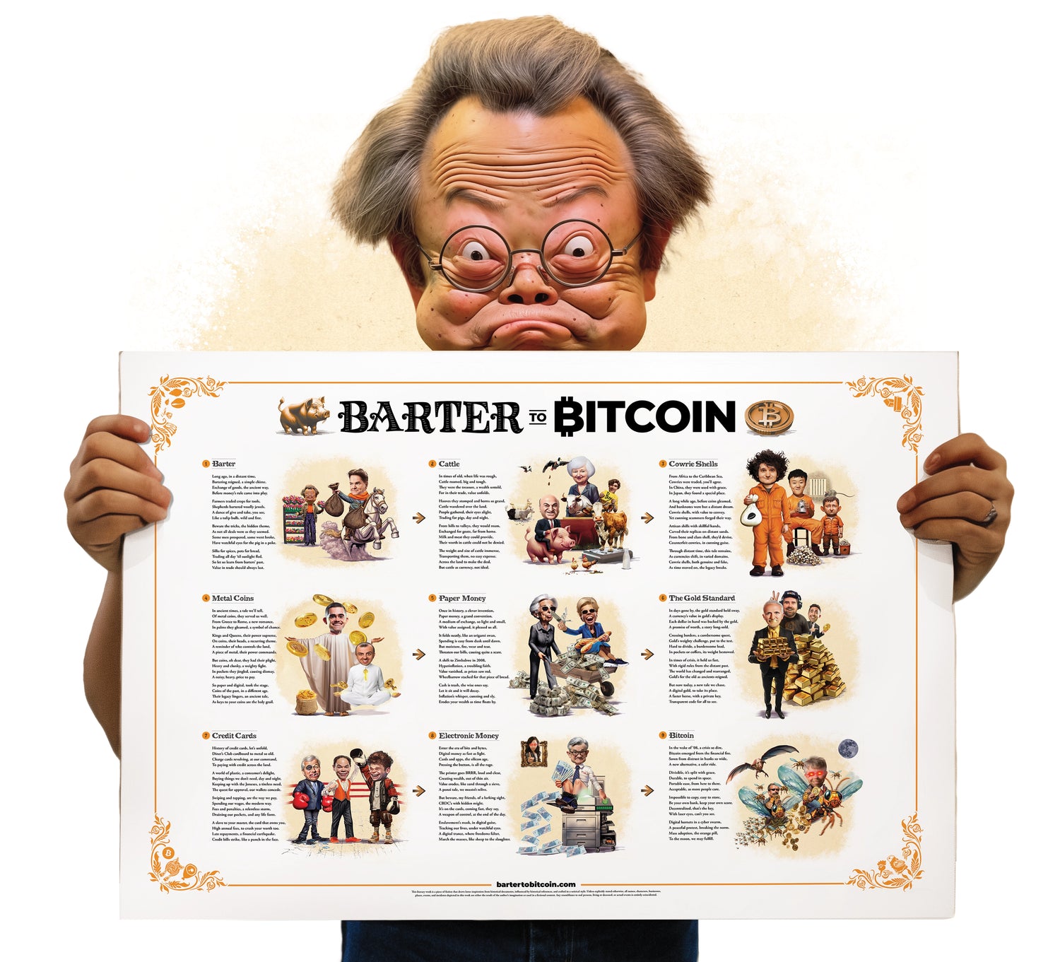 Satire is often entertaining, it is also often used to bring attention to a particular subject in order to promote change. As the printer goes BRRR, devaluing our hard earned dollars. We need to inspire the next generation to promote change. Grab a beautifully designed poster for the kids room or buy a book to orange pill your friend.